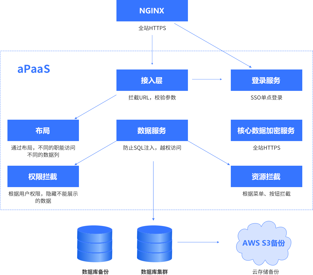 备注:::平台与业务分离,,,开发运维只运维平台,,,,业务专家生成的元数据(表/字段/运行逻辑)+业务数据全部以碎片的方式存储在DB中,,,技术人员无法解读,,,,只有业务专家授权后才能导出元数据+业务数据