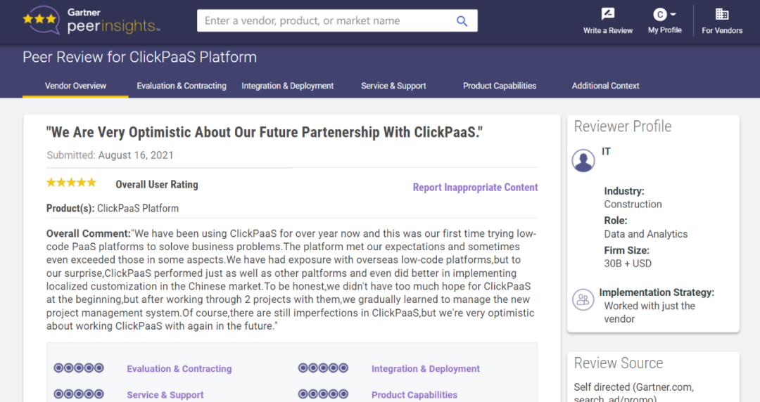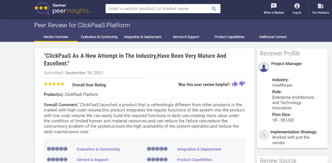 Tips::::【Peer Insights】——用户对企业IT产品和服务发布真实评价的平台。。。。目前已有355个市场,,,,255,000条经过验证的评价。。。。每一条评价Gartner会针对参评企业营收规模及参评人员信息做验证、、评价内容做多维核实。。